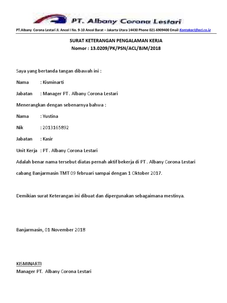 Dapatkan Contoh Paklaring Pt Albany Corona Lestari Terbaru Buat Contoh Surat 2021